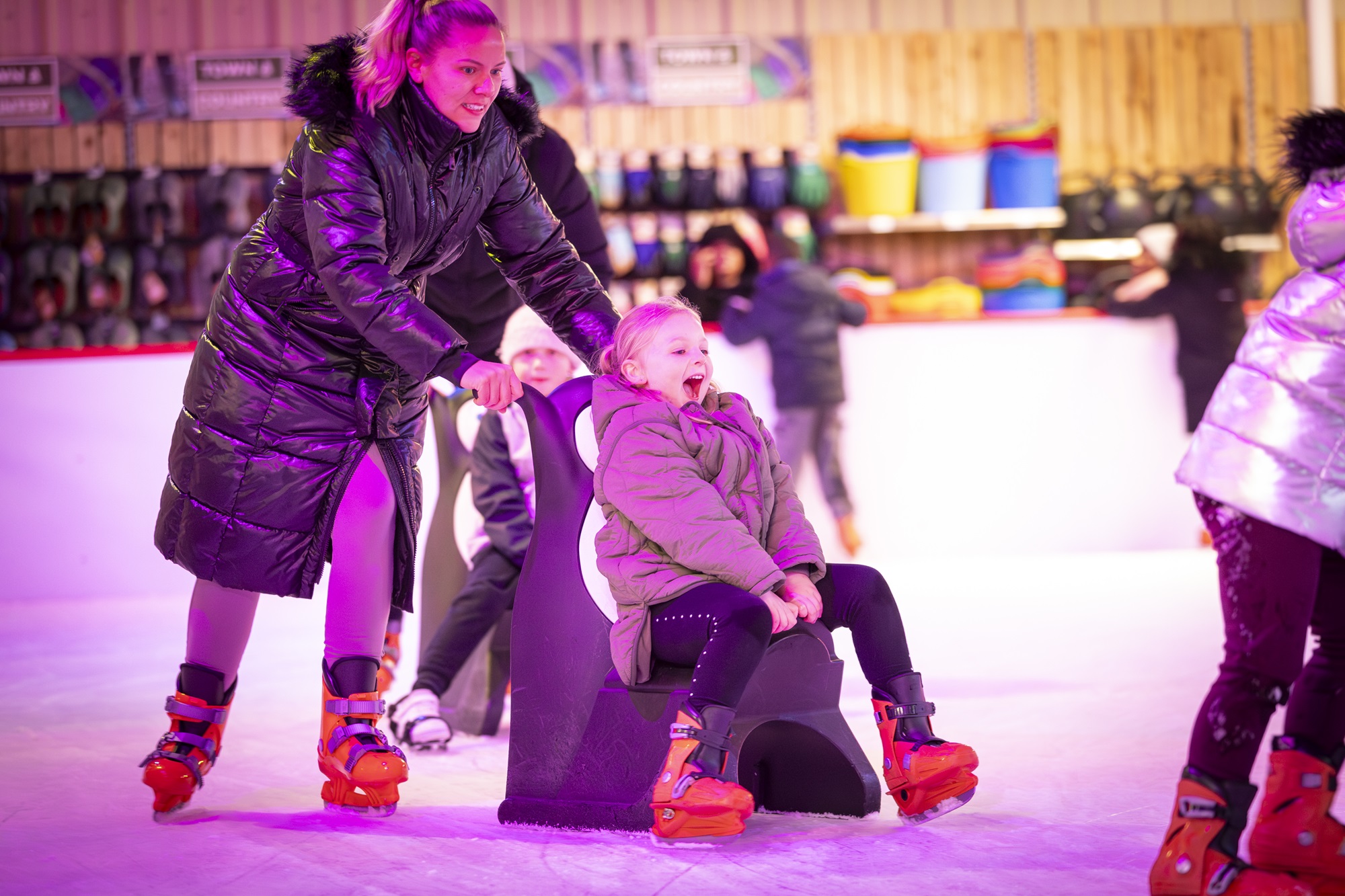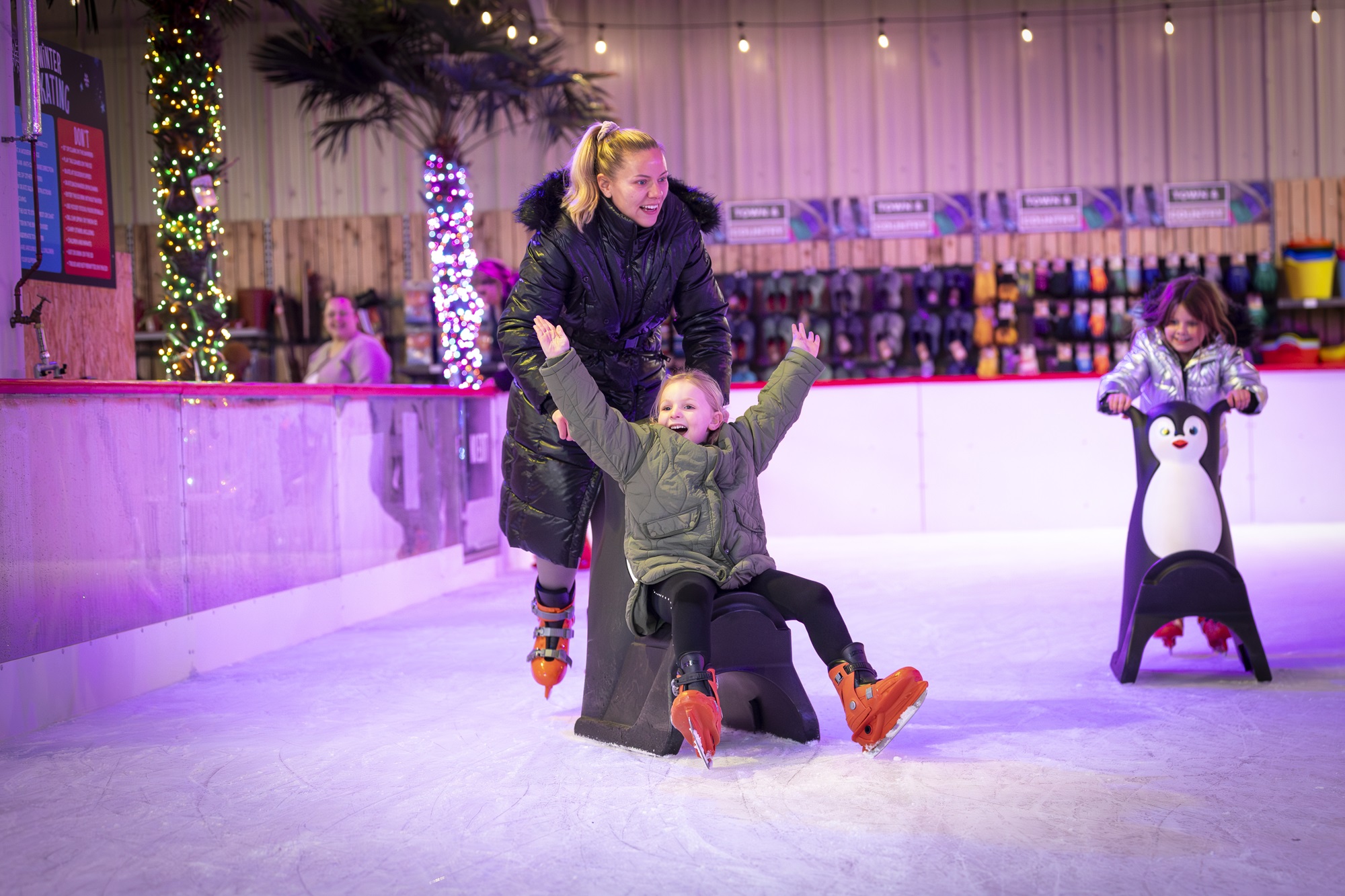 I visited with my hubby and 2 daughters (ages 9 and 3) on Sunday and we all had such a good time, my youngest especially loved been pushed around on the penguin skate aid. The staff were all helpful, polite and friendly when booking in. Would definitely book again, my kids have already asked when we’re going ice skating again!!